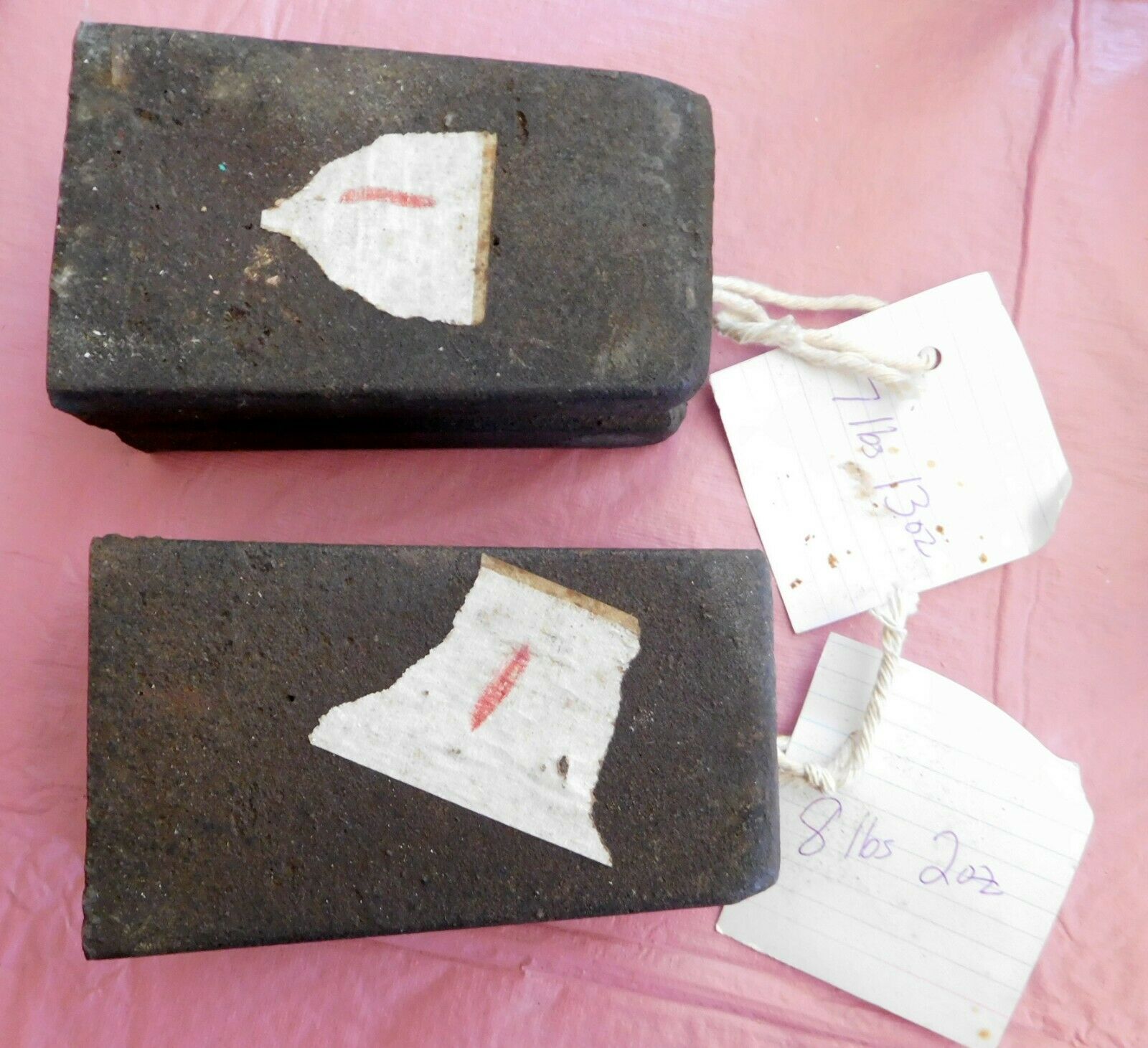 Pair (2) Original Antique Clock Weights 7 lbs 13 oz and 8 lbs 2 oz Rectangular