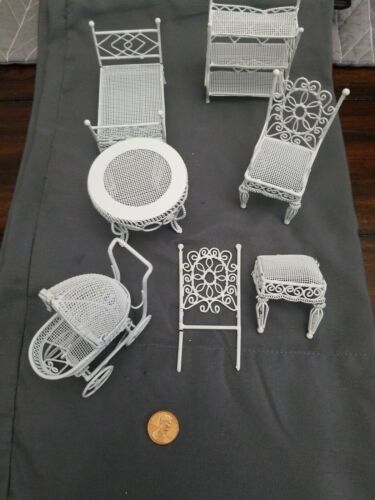 Dollhouse Miniature Wicker Wire Furniture Lot Vintage 6 piece Setting White