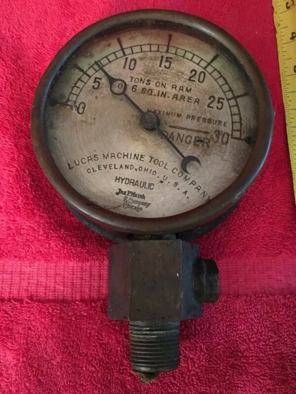 Vintage Jas P. Marsh Hydraulic Gauge Danger Gage Lucas Machine Tool Co Steampunk