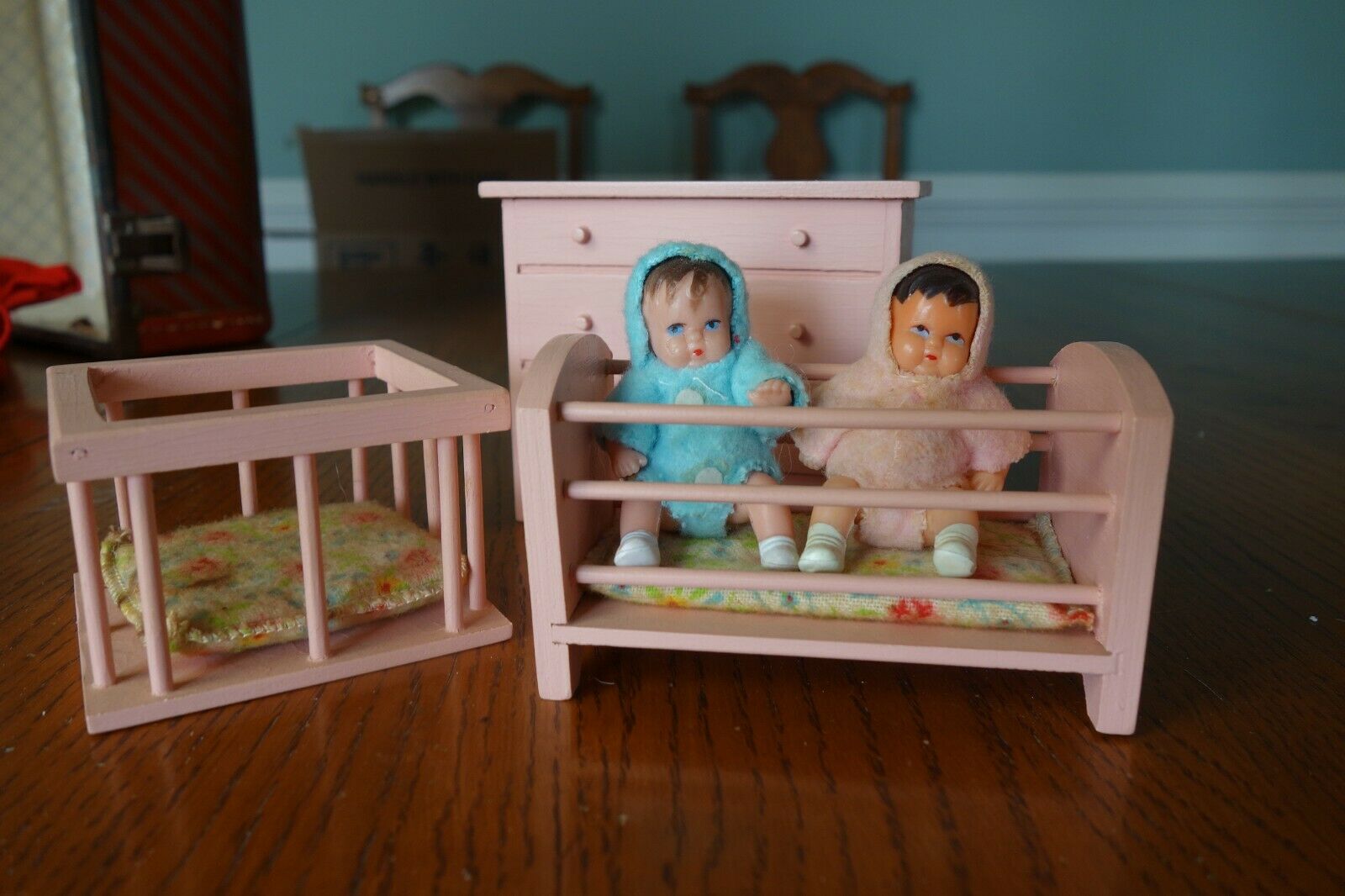 Vintage Doll House Furniture Halls Lifetime Toys German Rubber Doll Baby Crib
