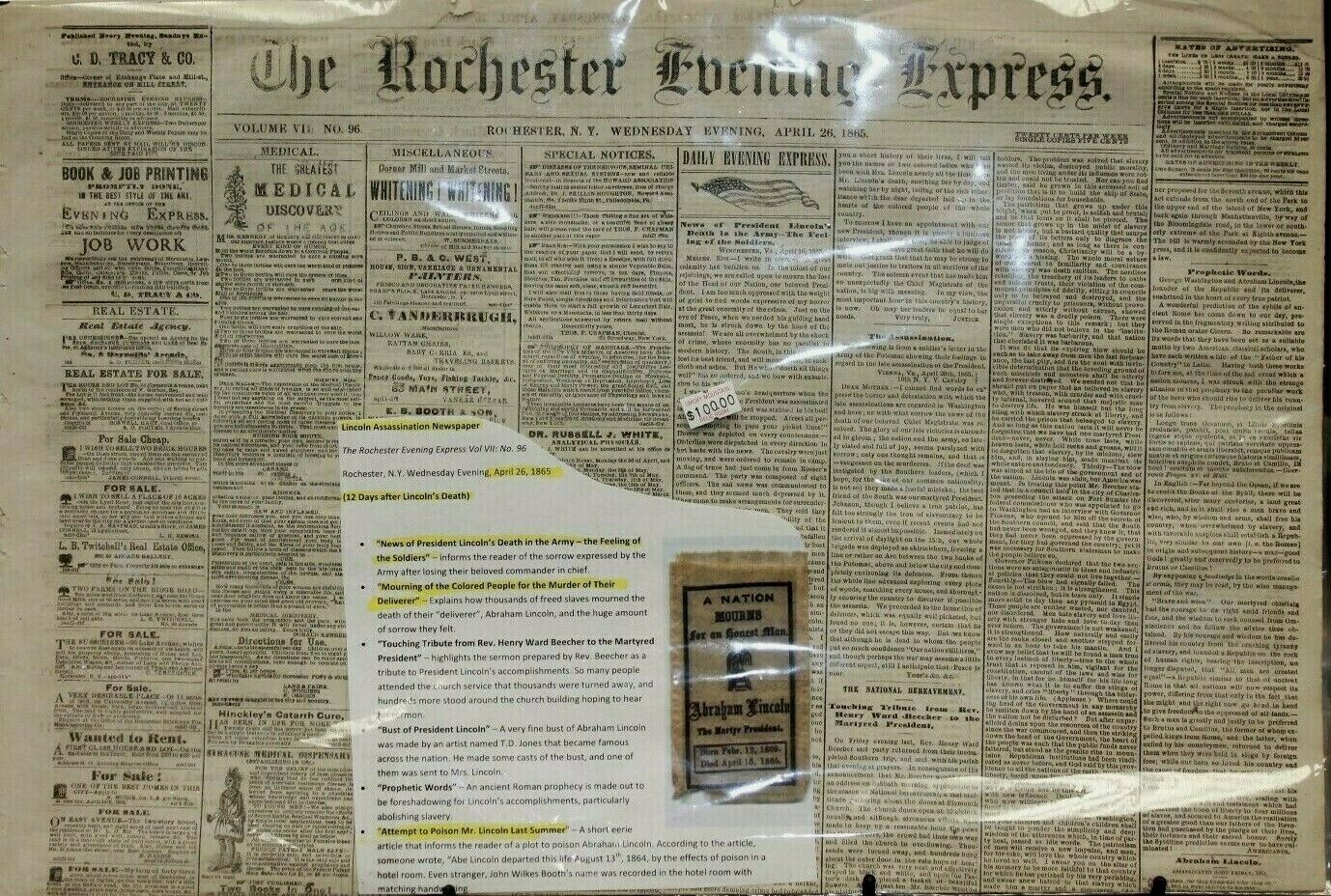 Title (ebay affiliate link): AUTHENTIC 1865 LINCOLN ASSASSINATION NEWSPAPER PUBLISHED 12 DAYS AFTER HIS DEATH