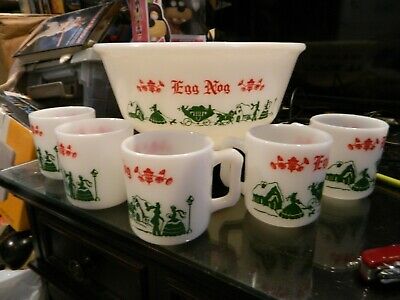 Title (ebay affiliate link): Hazel Atlas Milk Glass Christmas Egg Nog Punch Bowl & Cup Set Holiday Carriage