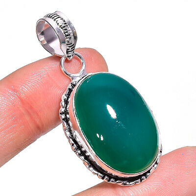 Title (ebay affiliate link): Green Chalcedony Vintage 925 Sterling Silver Jewelry Antique Design Pendant 1.7"