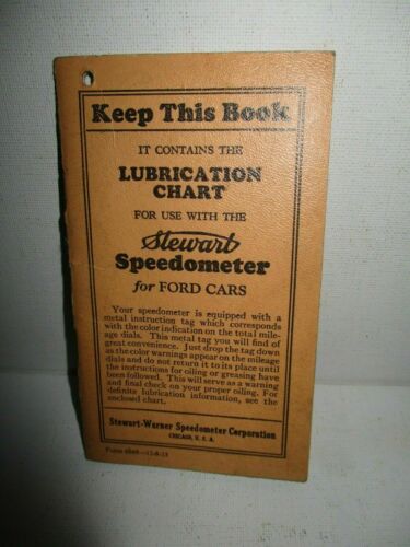 VINTAGE FORD MODEL T A STEWART-WARNER SPEEDOMETER CHASSIS LUBE CHART BOOKLET
