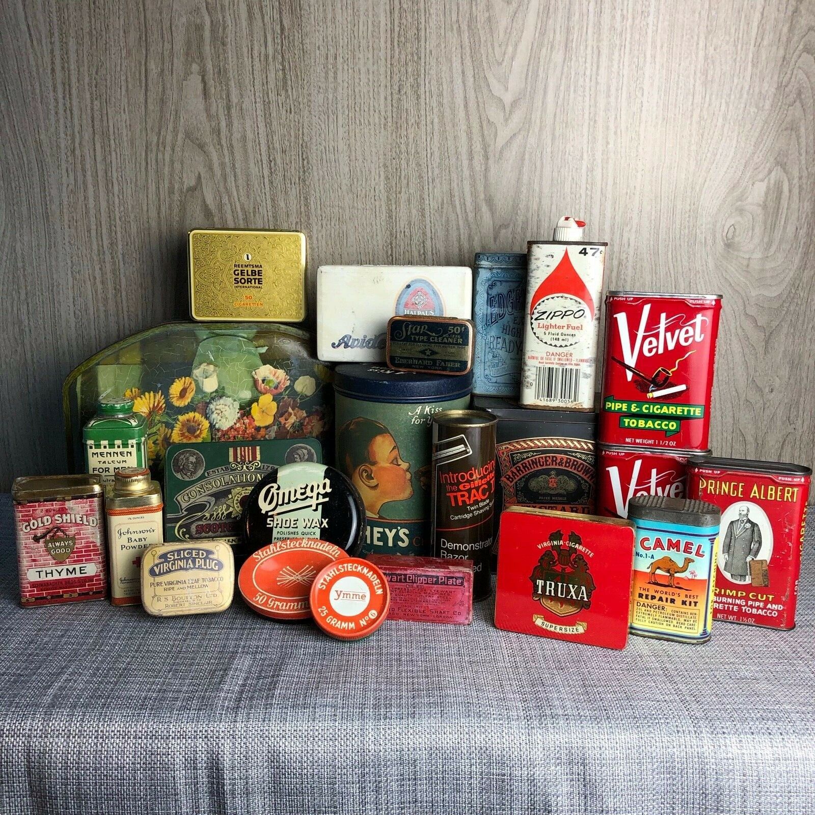Mixed Lot of 23 Vintage Antique Advertising Tins Tobacco Spice Powder & More