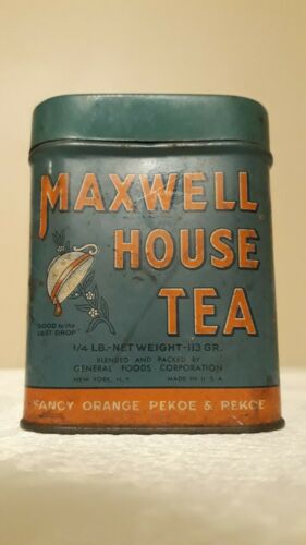 Title (ebay affiliate link): VINTAGE 1950''s MAXWELL HOUSE TIN ORANGE PEKOE AND PEKOE TEA TIN