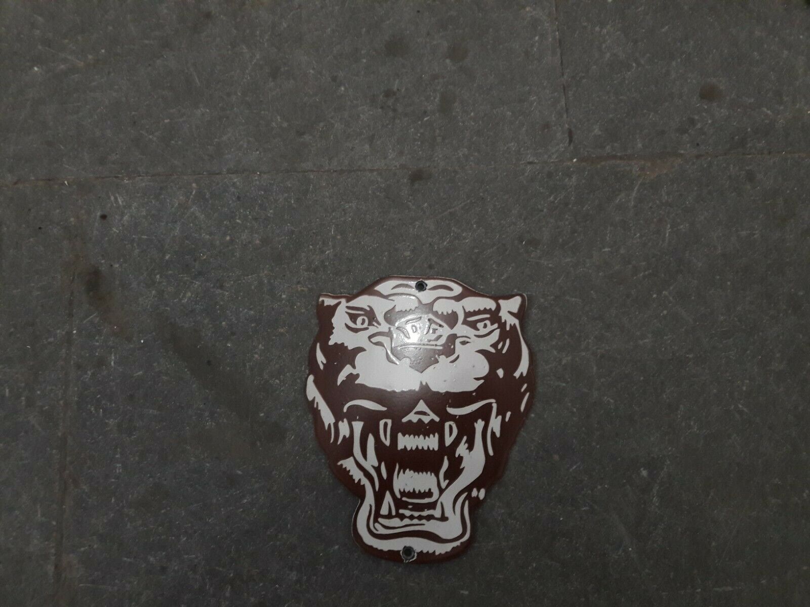 Title (ebay affiliate link): Porcelain Jaguar Die Cut Enamel Sign Size 6" x 5" Inches