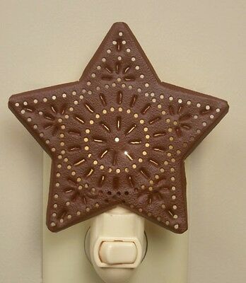 Title (ebay affiliate link): Country Primitive Metal Punched Star Night Light Barn Red