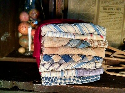 Title (ebay affiliate link): PRIMITIVE VINTAGE PATCHWORK 1890s CUTTER QUILT BUNDLE BLUES AMERICANA PATRIOTIC