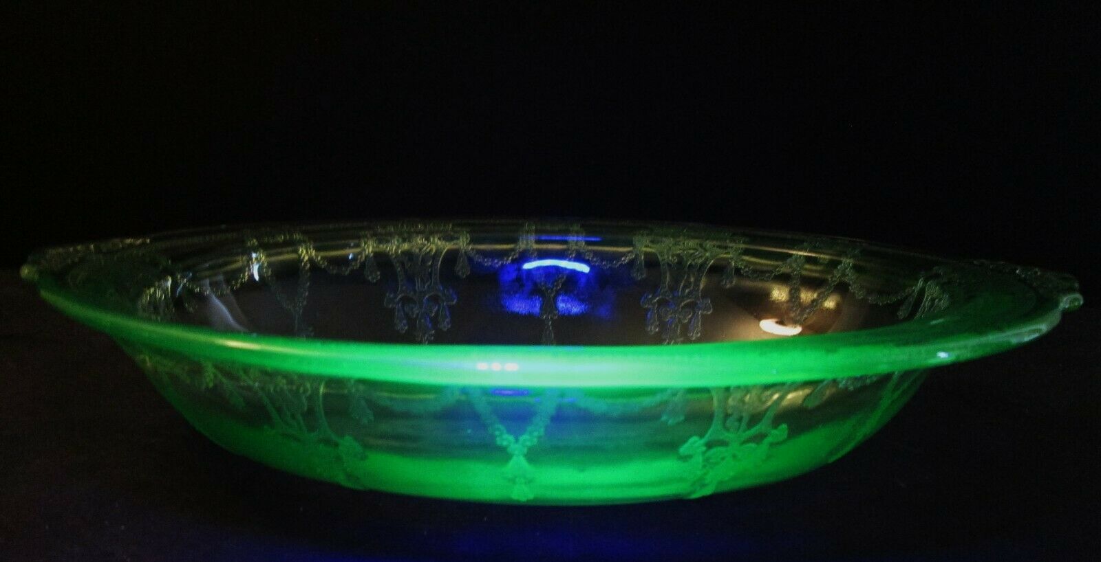 ANTIQUE 1930 URANIUM VASELINE DEPRESSION GLASS DANCING GIRL ANCHOR HOCKING BOWLS