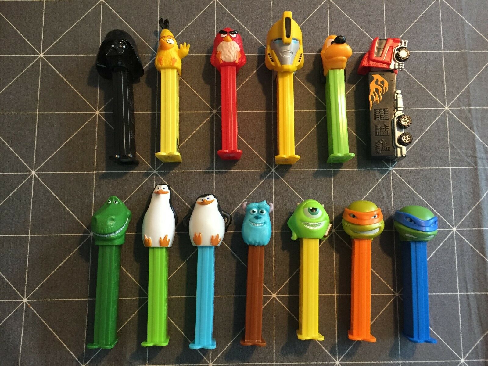 Title (ebay affiliate link): 13 x PEZ Angry Birds, Star Wars, Madagaskar, Monster AG Ninja TurtlesTransformer