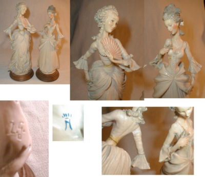 2 CAPODIMONTE SIGNED ARMONI VICTORIAN LADY SCULPTURES