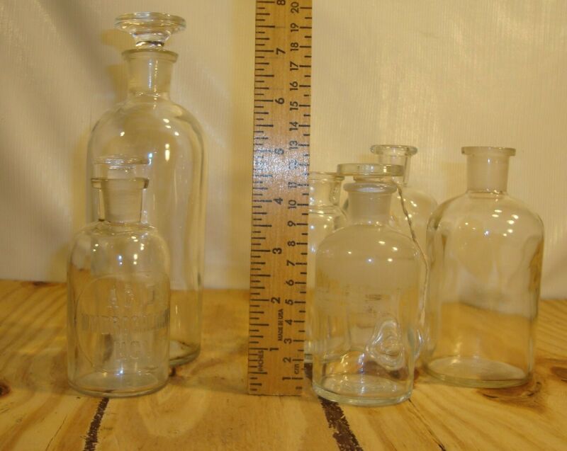 Title (ebay affiliate link): ANTIQUE HCL ACID T.C.W. CO PYREX GLASS APOTHECARY (Pharmacy) BOTTLE LOT Clear