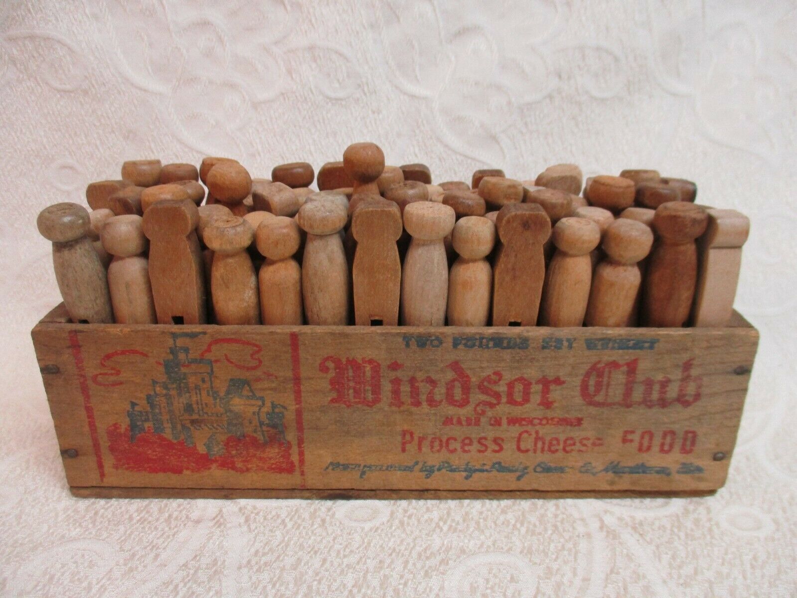 Antique Wooden Clothespins Windsor Cheese Box Country Farmhouse Laundry Decor
