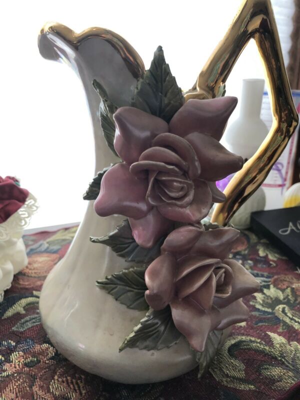 Title (ebay affiliate link): Vintage Capodimonte Pitcher Vase Pink Flower Porcelain 11" Tall
