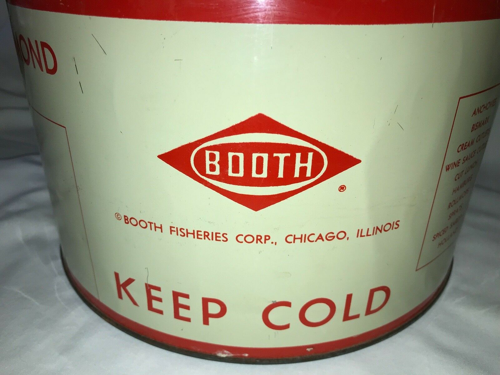 Title (ebay affiliate link): Vintage BOOTH FISHERIES CORP. tin PICKLED HERRING SEAFOOD Red Diamond 1 gal.+