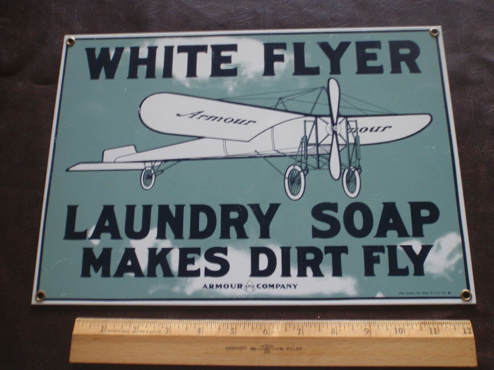 Ande Rooney Porcelain White Flyer Armour Laundry Soap Sign Plane Airplane 1987