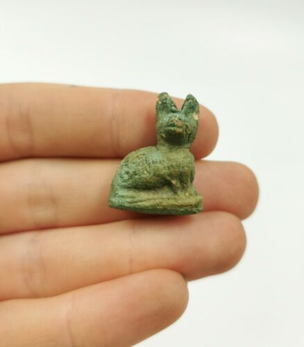 Title (ebay affiliate link): LARGE UNUSUAL CA.1300 BC EGYPTIAN FAIENCE CAT AMULET - WEARABLE - R174