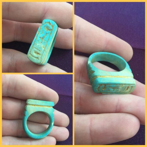 Title (ebay affiliate link): Rare ancient Egyptian blue amulet ring with hieroglyphics, 300 bc