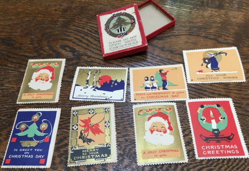 Title (ebay affiliate link): Rare 1914 Antique Vintage teen tiny CHRISTMAS BOX w/ 8 VINTAGE STAMPS!