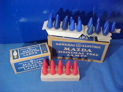 27-1930s GE MAZDA Christmas TREE RED + BLUE LAMP BULBS w Orig BOX