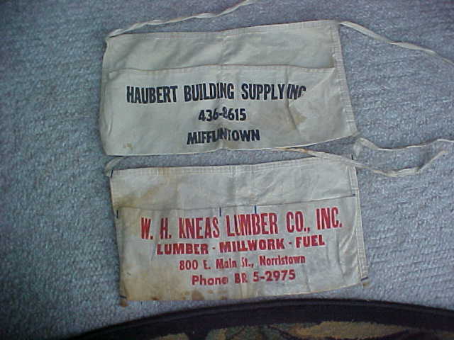 Vintage lot 2 cloth advertising carpenters nail aprons Haubert Mifflintown etc
