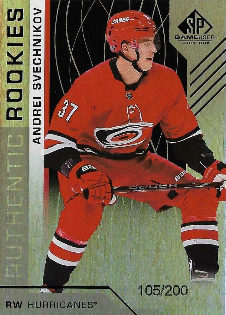 Title (ebay affiliate link): 2018-19 SP Game Used Rainbow #120 Andrei Svechnikov/200