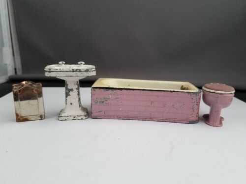 Antique 1920s Tootsie Toy Dollhouse Metal Furniture Bathroom set