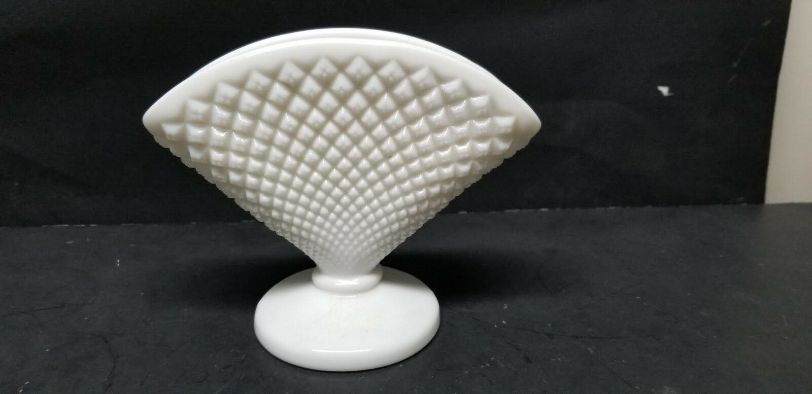 Title (ebay affiliate link): WESTMORELAND ENGLISH HOBNAIL WHITE MILK GLASS FAN VASE DIAMOND POINT