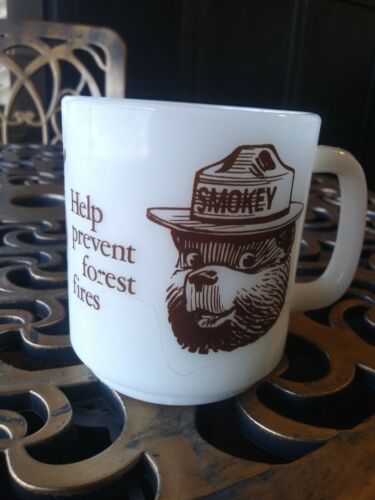 Vintage Smokey the Bear Milk Glass / Glasbake Mug