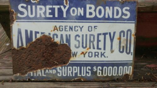 Heavy, solid PORCELAIN SIGN AMERICAN SURETY CO. NY