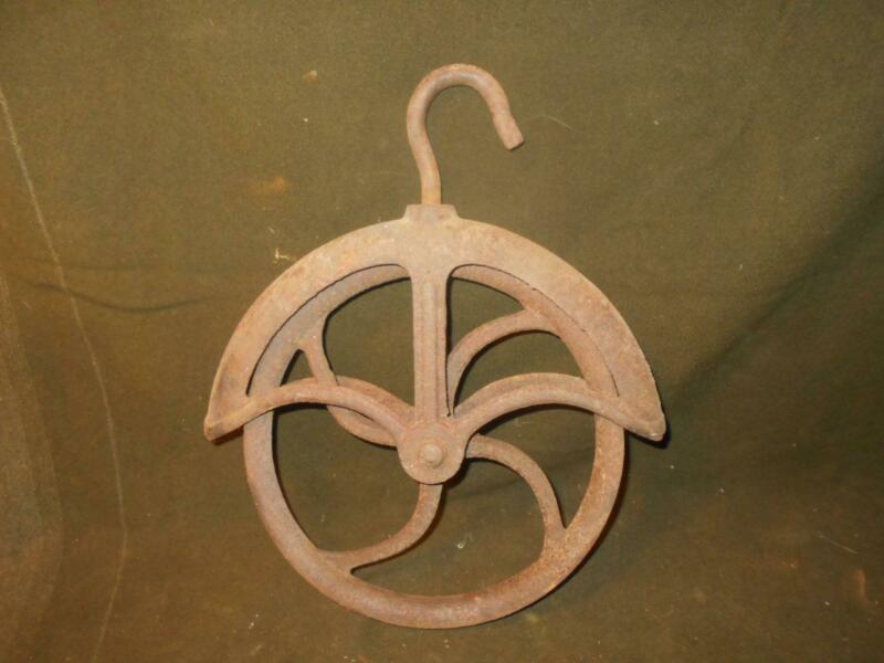 Antique # 10 Cast Iron Water Well Rope Pulley approx 9" Wheel Vintage Farm