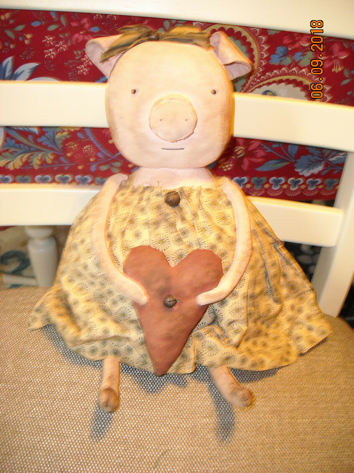 Title (ebay affiliate link): Primitive Grungy Folk Art OOAK Plump Pig Doll Holding Heart