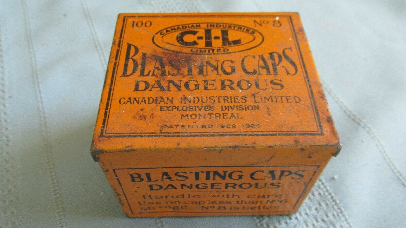 Canadian Industries Limited No. 8 Blasting Cap Tin-1924 Patent Date-Explosives