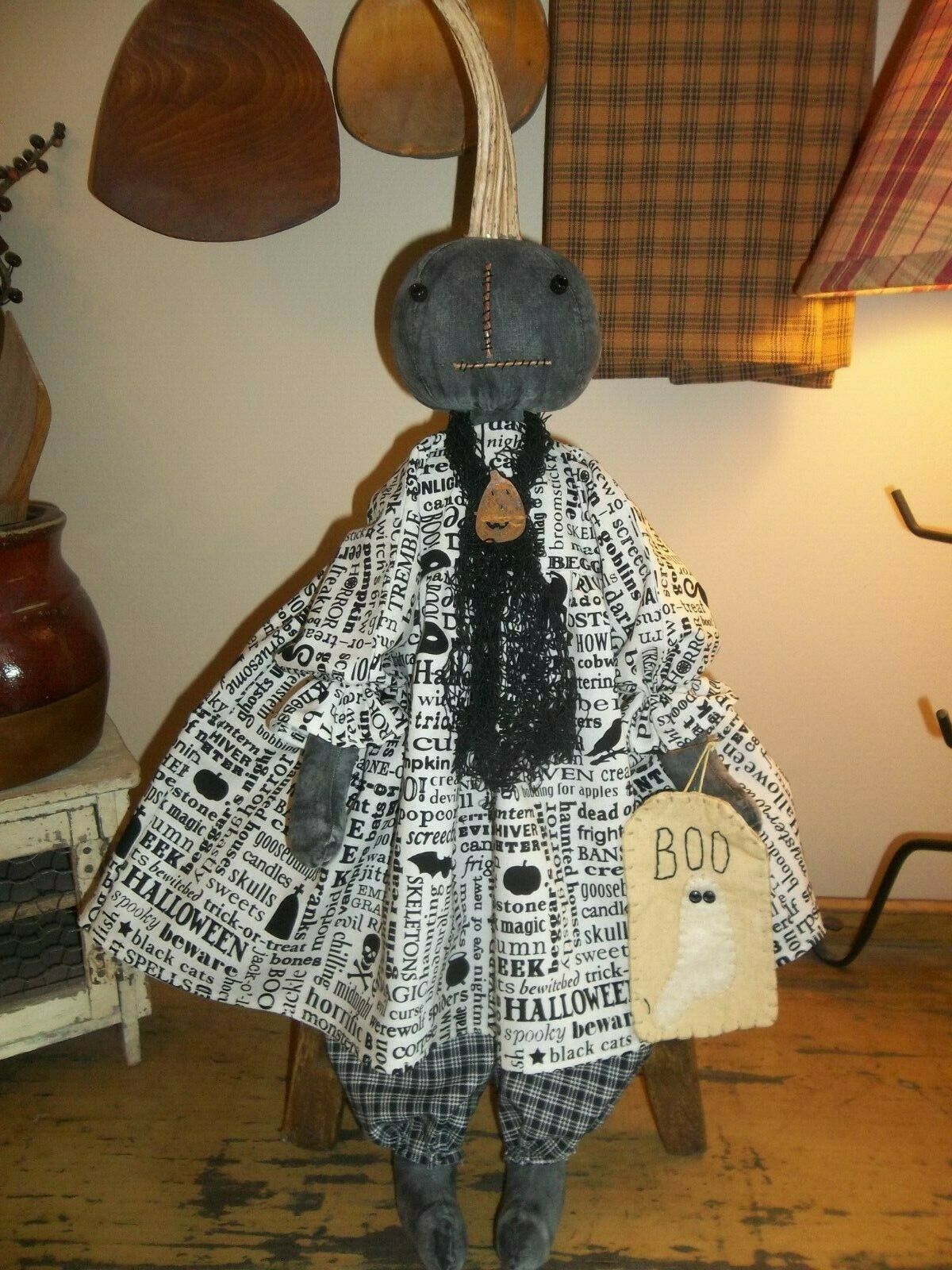 Title (ebay affiliate link): PRIMITIVE RAGGEDY HALLOWEEN FALL BLACK PUMPKIN DOLL