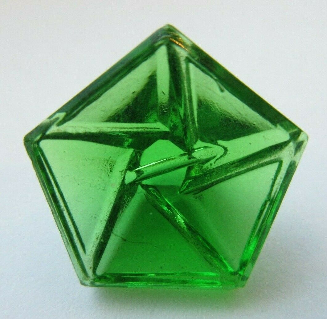 Striking Antique~ Vtg Emerald Green Depression GLASS BUTTON Reverse Etched (B)