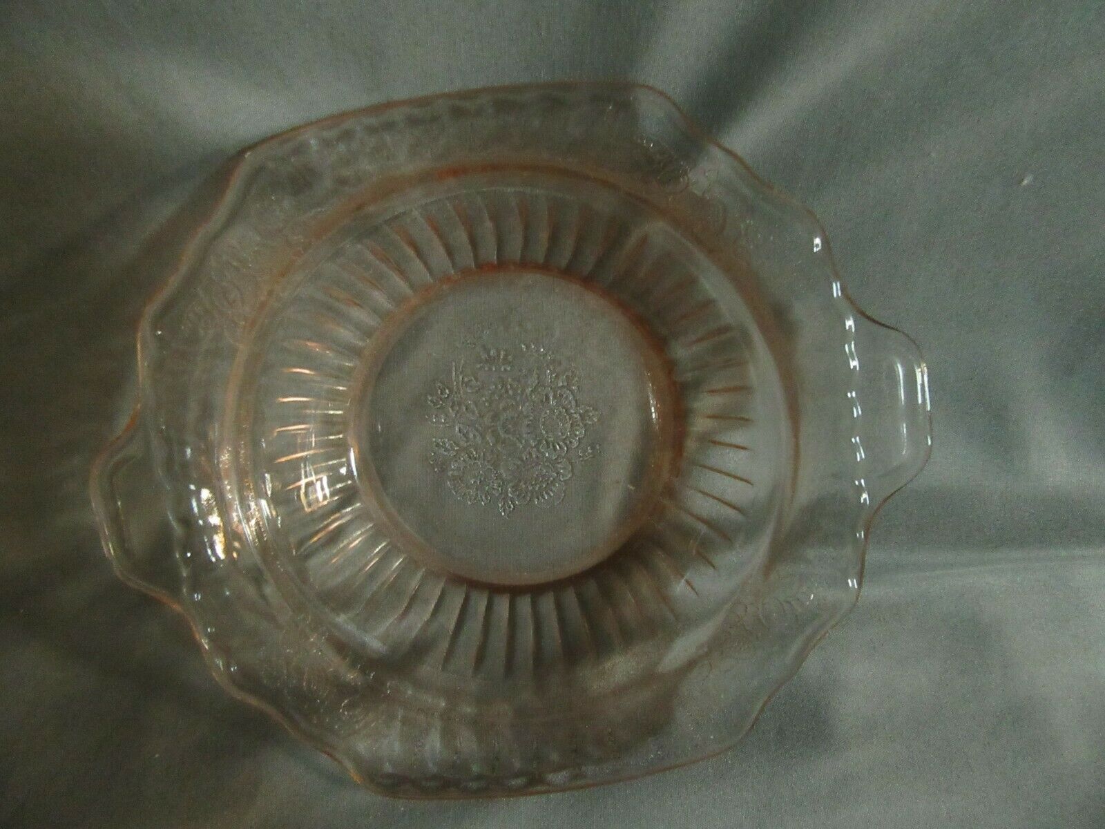 Title (ebay affiliate link): Pink Depression Mayfair Open Rose Glass Handled Round Bowl 30''s