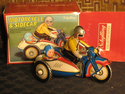 Schylling Tin Motorcycle & Sidecar, wind-up action