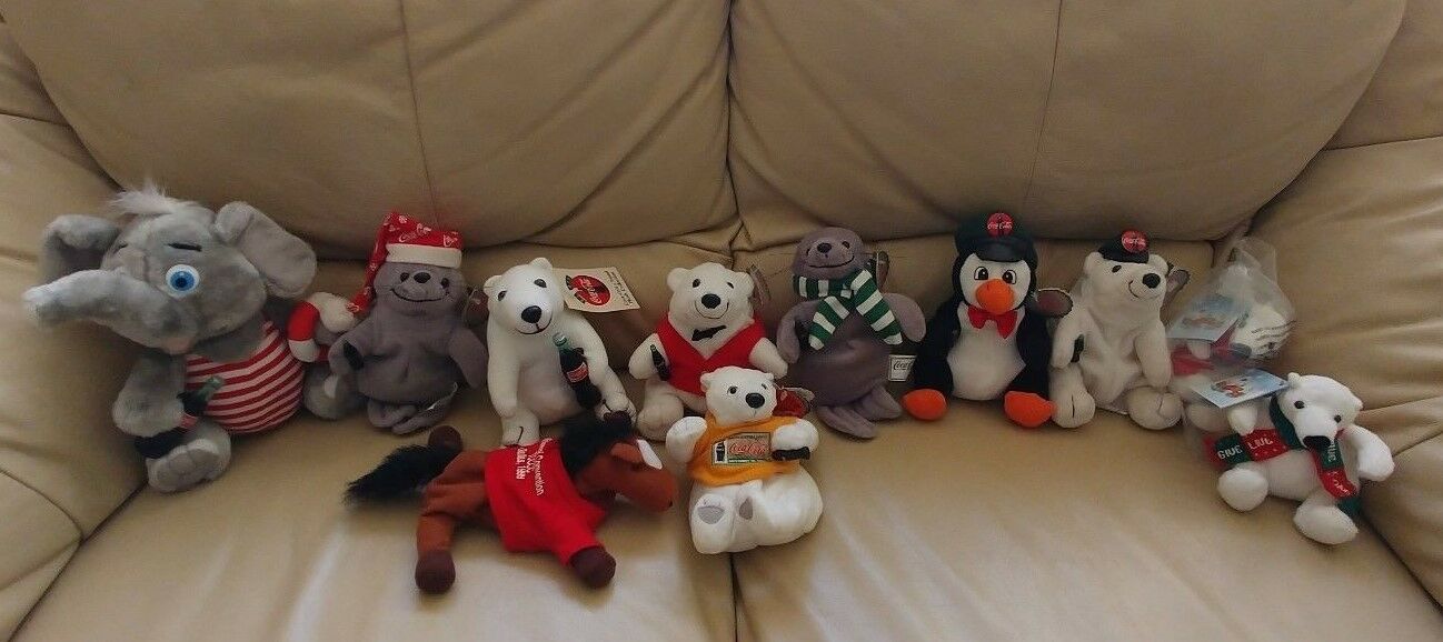 Title (ebay affiliate link): Coca-Cola Collectibles Lot of 11 Plush "beanbag" toys