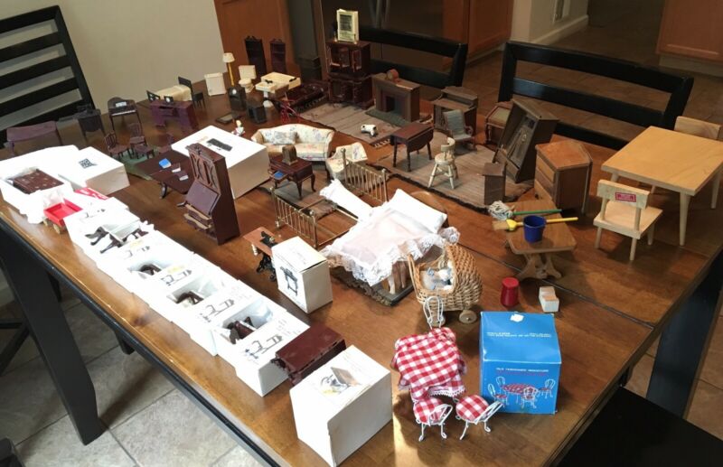 Title (ebay affiliate link): Antique Vintage Miniature Dollhouse Furniture Collection