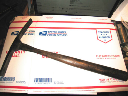 ANTIQUE UNKNOWN MAKER STONE MASONS HAMMER W/ WIDE 8 5/8" DOUBLE BIT HEAD