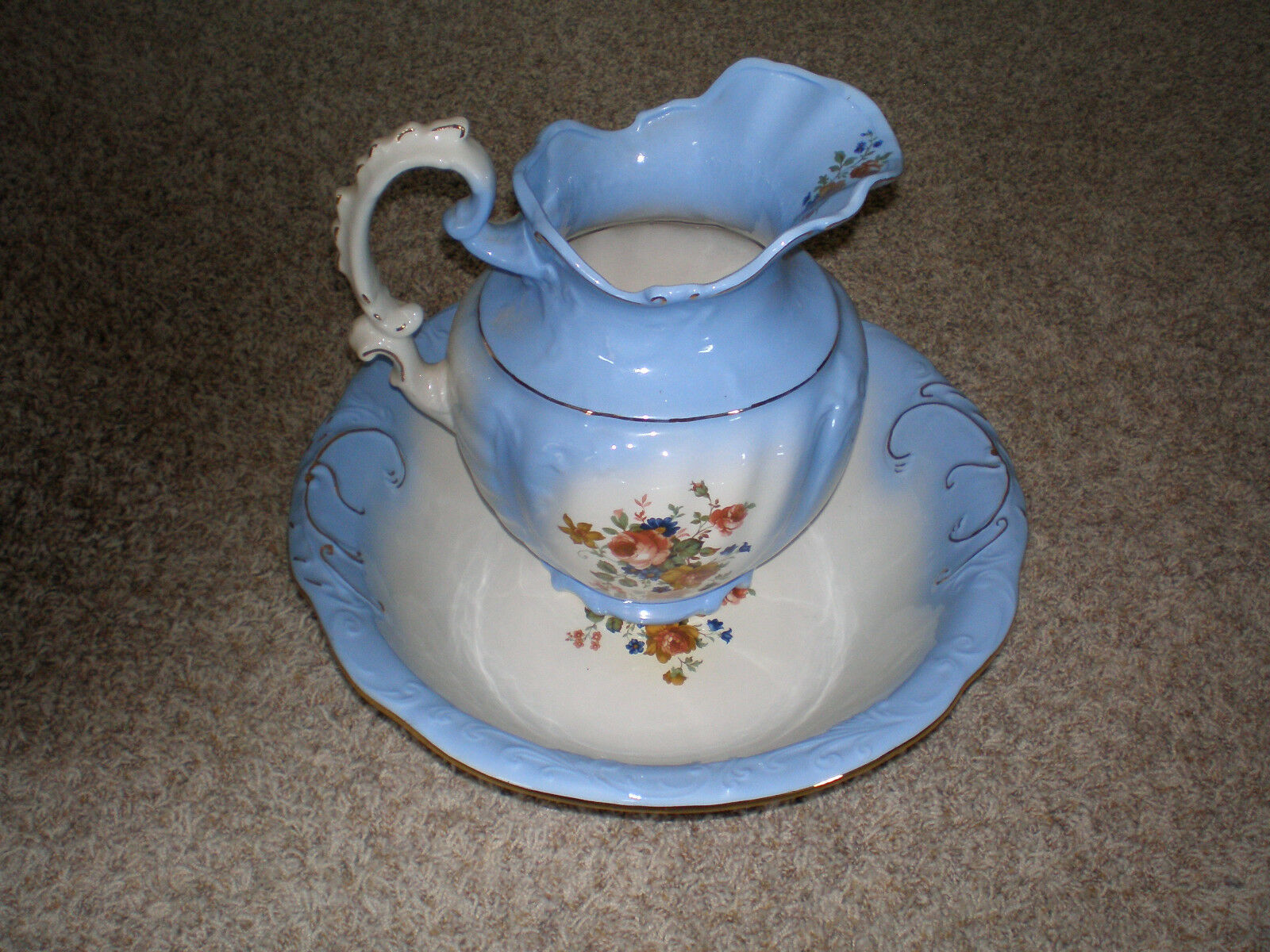 Wash Bowl and Pitcher with gold trim