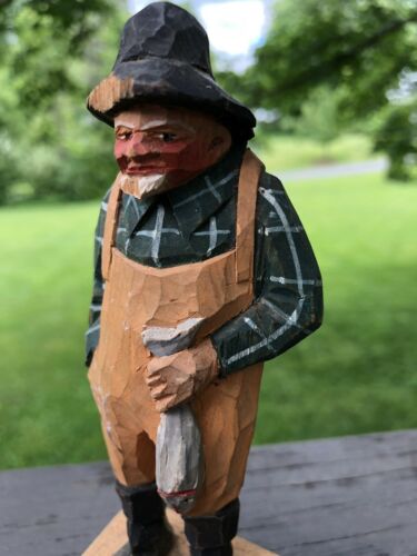 Vintage Carved Wooden Figurine Fisherman 6"