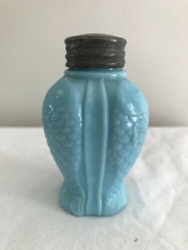 Antique EAPG Consolidated Glass Blue Glass Fish Figural Shaker - 1800''s
