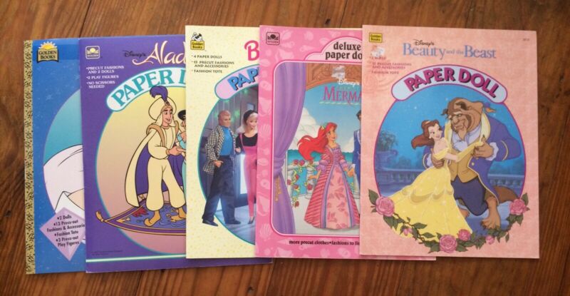 5 Vintage Paper Dolls Beauty and Beast Aladdin Mermaid and more