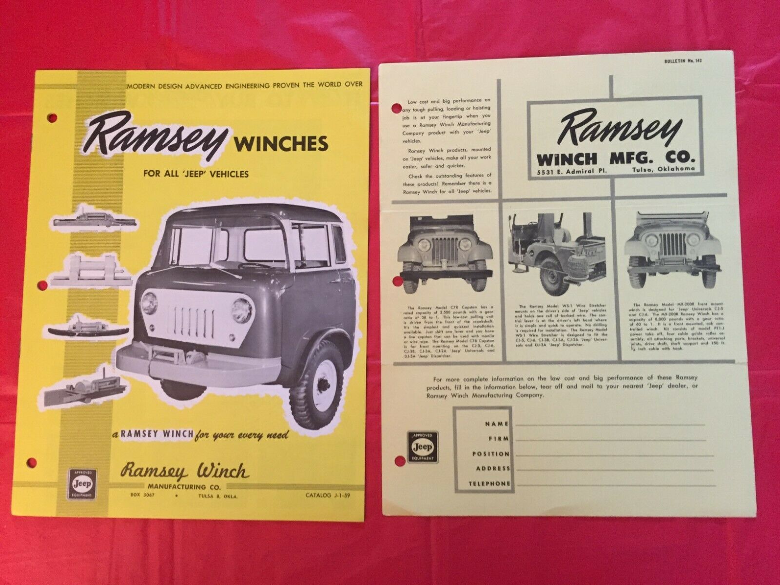 LOT 2-1959 Ramsey Winches For All Willys & Jeep Vehicles Dealer Sales Brochures