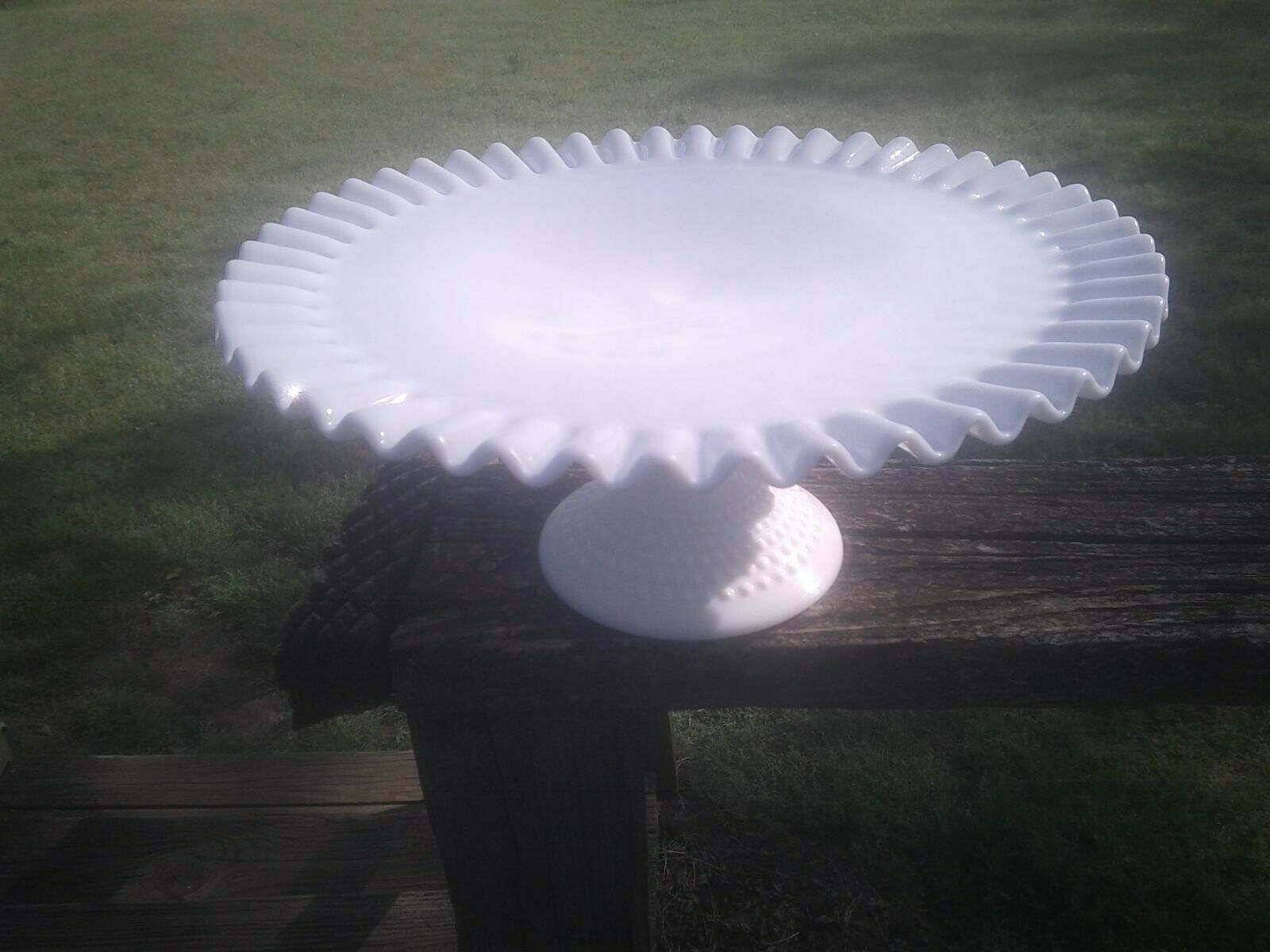 Title (ebay affiliate link): VTG~FENTON MILK GLASS~PEDESTAL CAKE STAND~RUFFLED EDGE~HOBNAIL~12-1/4"~SIGNED