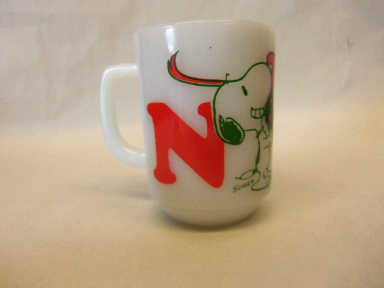 Vintage SNOOPY "NOEL" Milk Glass CUP/MUG ...FIRE KING...ANCHOR HOCKING