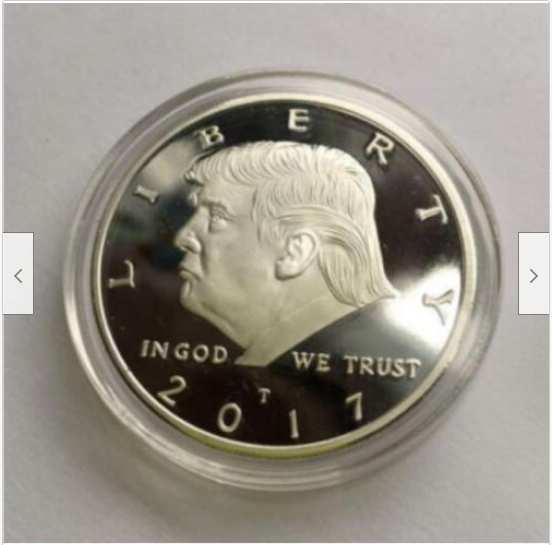 Title (ebay affiliate link): President Donald Trump Inaugural Silver EAGLE Commemorative Novelty Coin 2017