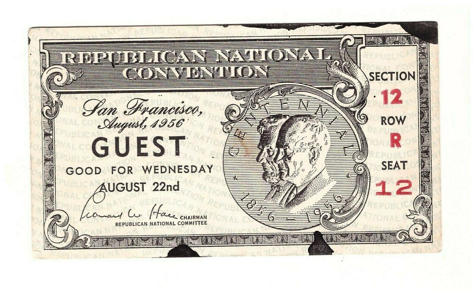 Title (ebay affiliate link): 1956 Republican National Convention Cow Palace Admission Ticket